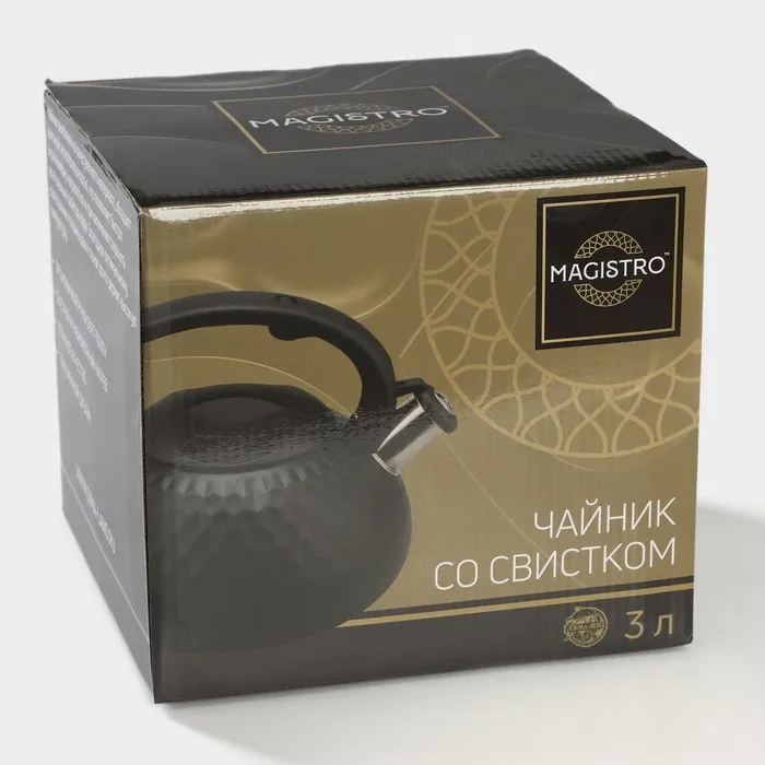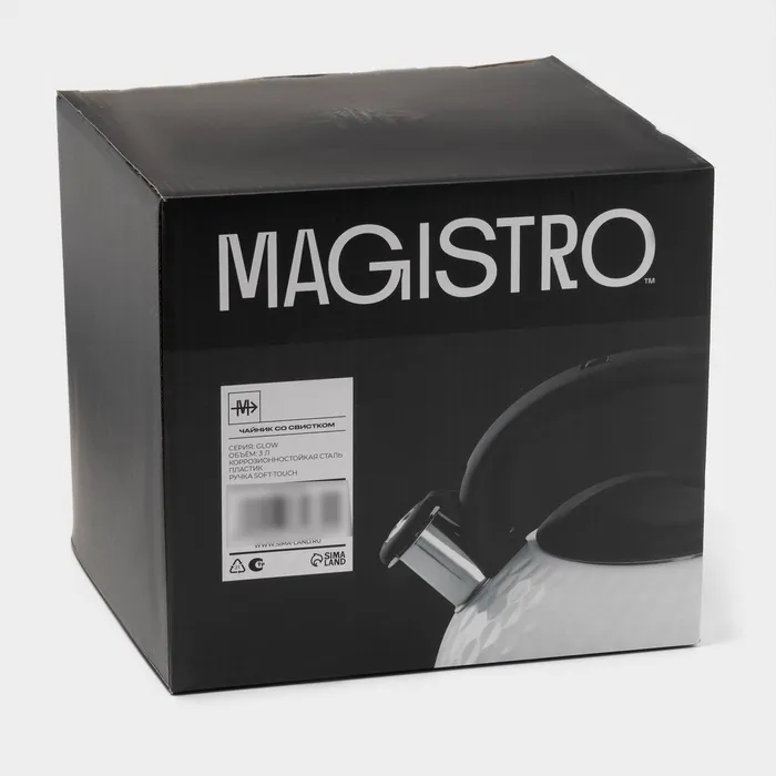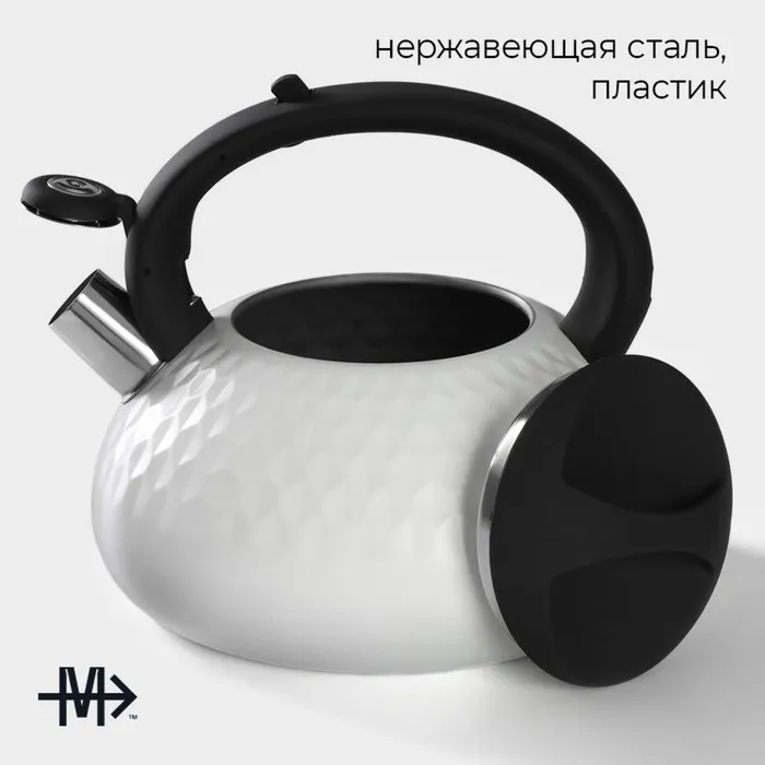 Чайник Magistro Glow, 3 л, со свистком, ручка soft-touch, индукция, нержавеющая сталь, белый — Характеристики