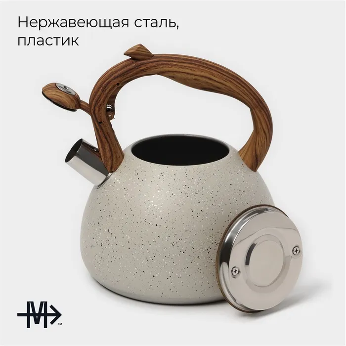 Чайник Magistro Stone, 2.7 л, со свистком, ручка soft-touch, индукция, нержавеющая сталь, бежевый — Характеристики
