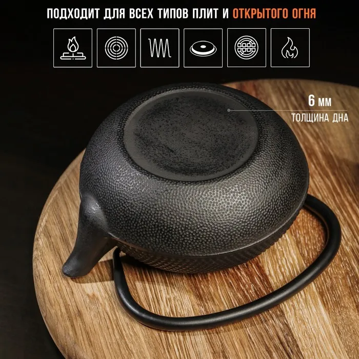 Этот чугунный чайник объемом 600 мл с эмалевым покрытием и ситом — идеальный выбор для ежедневного использования. Он создаст уютную и теплую атмосферу за столом во время чаепития. Чугун сохраняет тепло долго, а сито позволяет отделить листья чая от напитка.