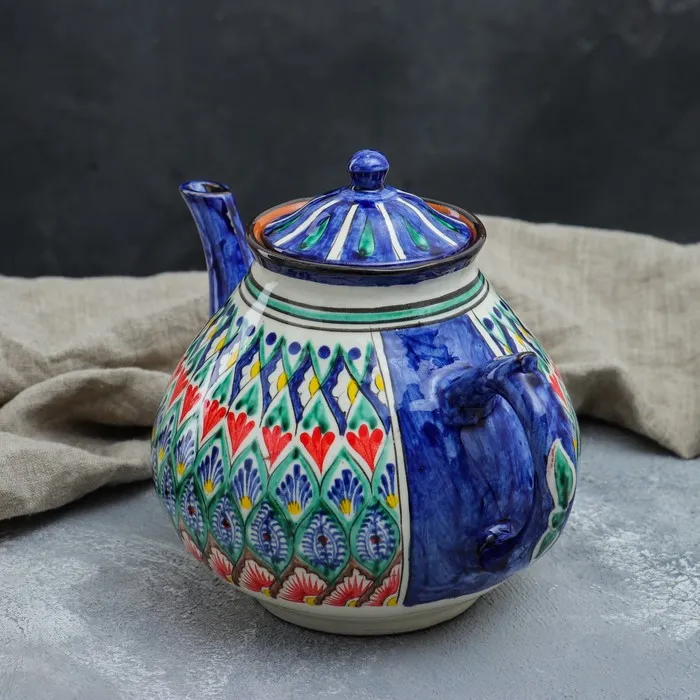 Чайник Риштанская Керамика "Узоры", 1600 мл, синий микс — Характеристики