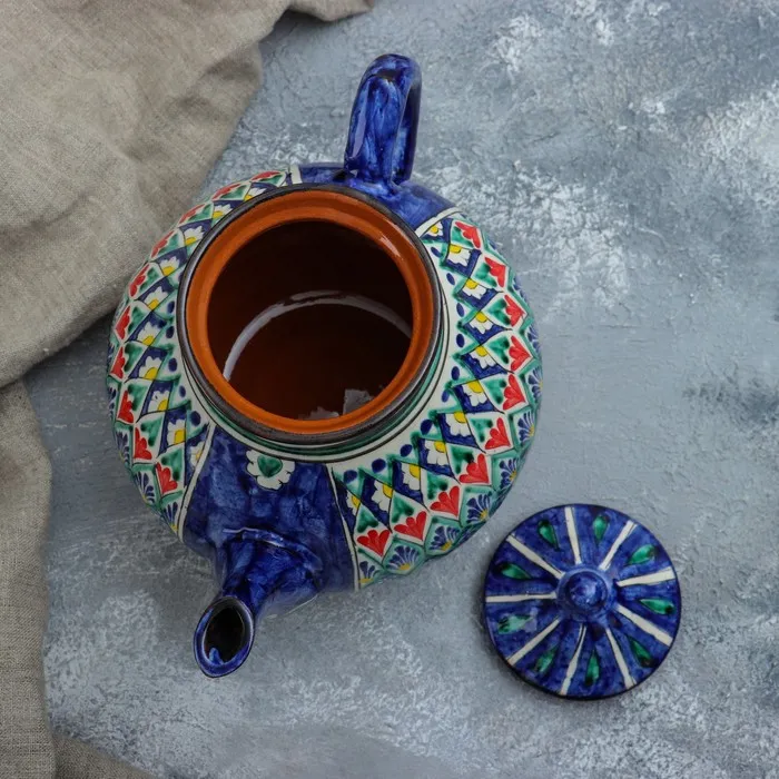 Чайник Риштанская Керамика "Узоры", 1600 мл, синий микс