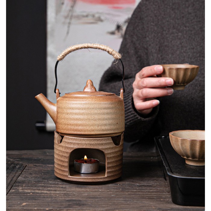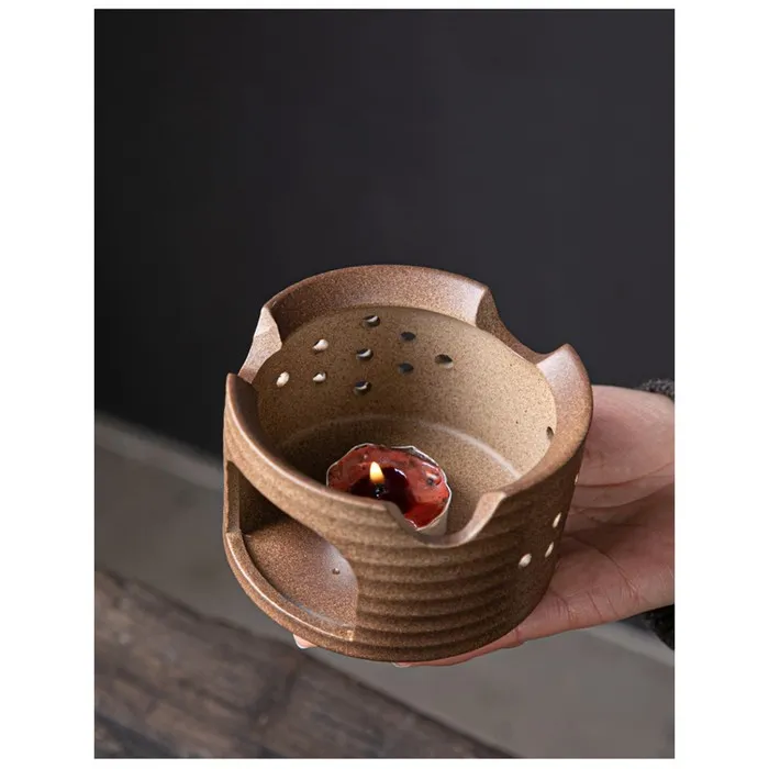 Подставка засчет горения свечки подогревает воздух внутри емкости, который не дает остыть посуде, Во время подогрева пламя свечи не должно касаться дна посуды, иначе не только чай лишится вкуса, но и чайник быстро придет в негодность.