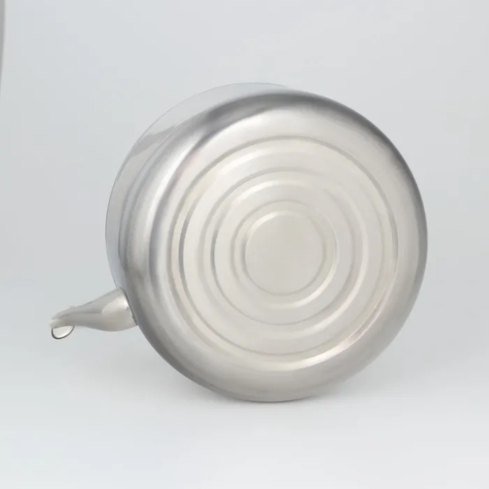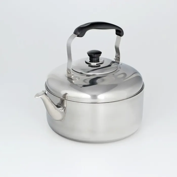 Чайник из нержавеющей стали марки AISI 430 — практичный кухонный инструмент на долгие годы. Современная форма обеспечивает быстрый нагрев воды и долгое сохранение её высокой температуры. Благодаря элегантному дизайну предмет станет украшением интерьера.
