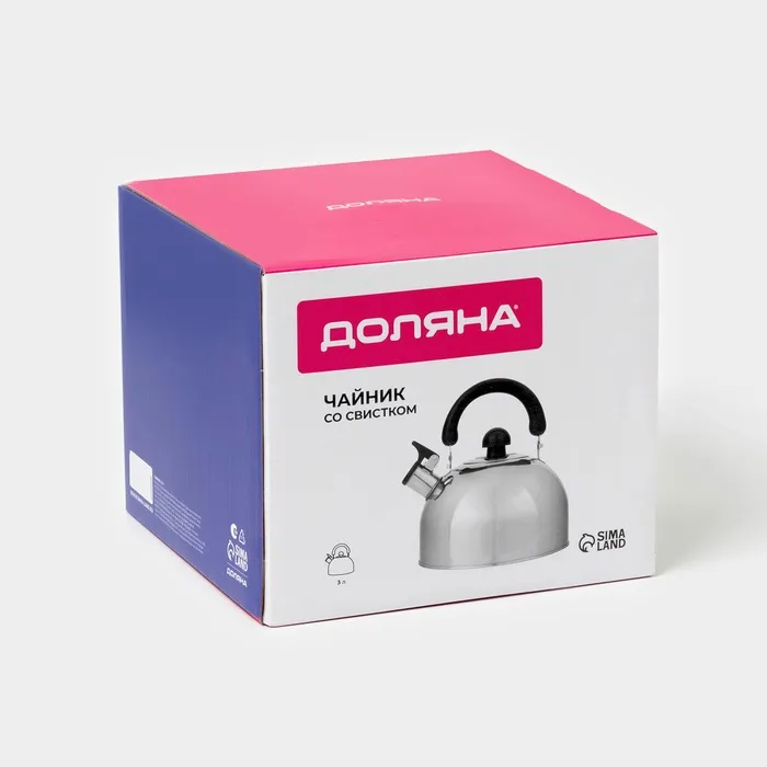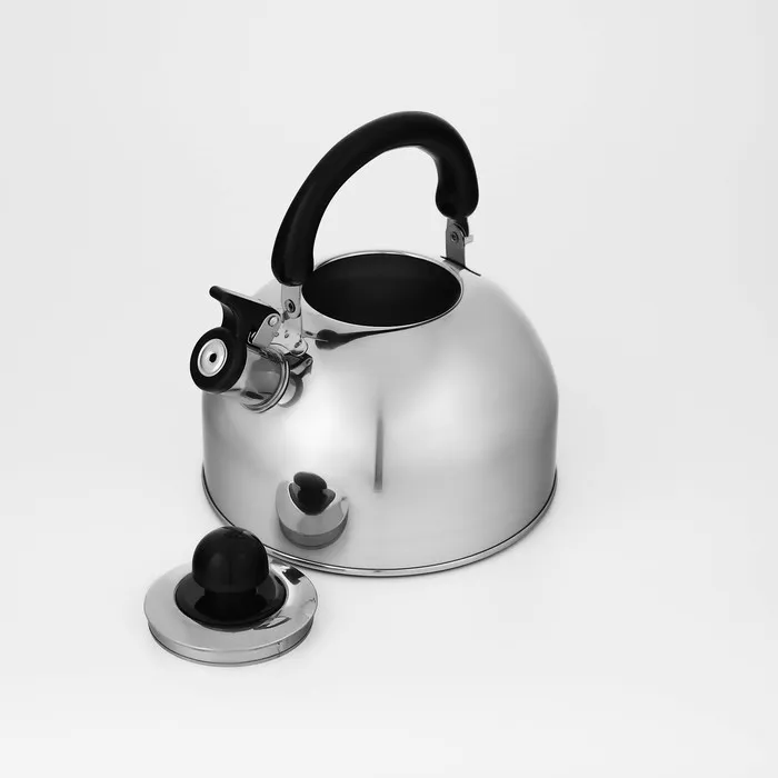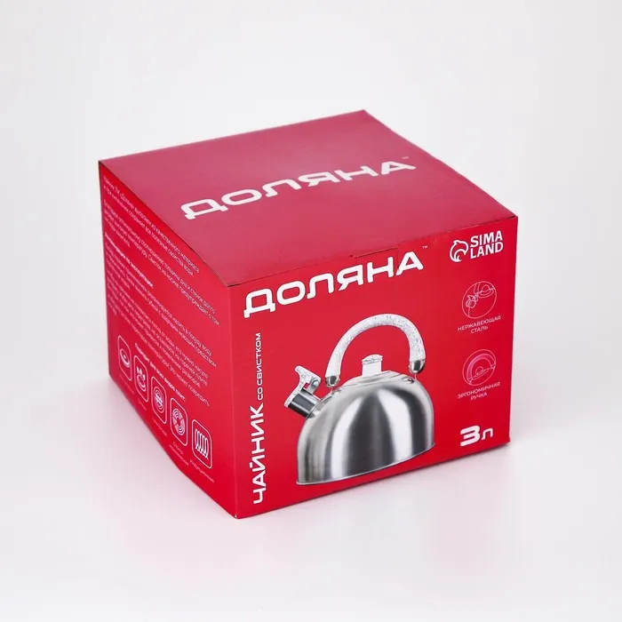 Чайник со свистком Доляна «Чёрная ночь», 3 л, нержавеющая сталь, фиксированная ручка, хромированный — Характеристики