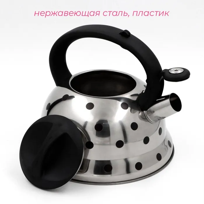 Чайник со свистком Доляна «Горошек», 2.8 л, нержавеющая сталь, хромированный — Характеристики