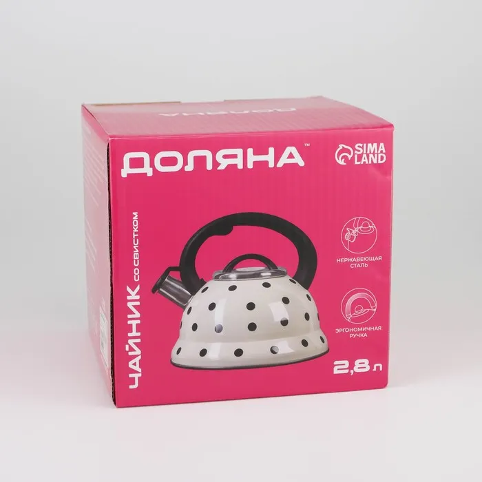 Чайник со свистком Доляна «Горошек», 2.8 л, нержавеющая сталь, хромированный