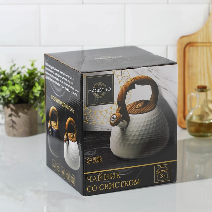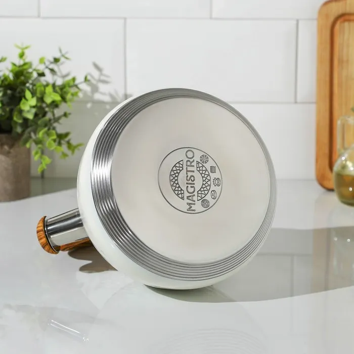 Чайник со свистком из нержавеющей стали Magistro Heat, 3 л, ТРС, индукция, ручка soft-touch, цвет белый — Характеристики