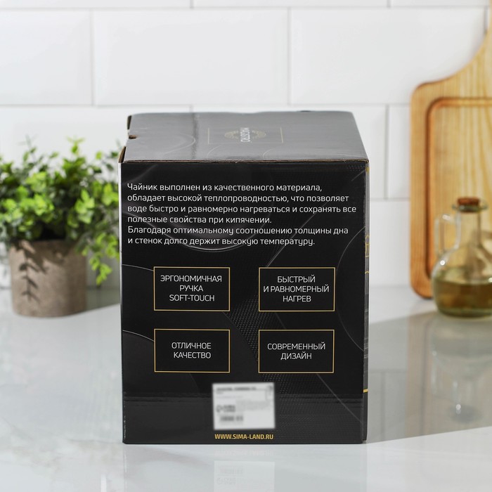Имеет теплораспределительный слой, что обеспечивает быстрый нагрев воды и долгое сохранение её высокой температуры .Удобная и приятная на ощупь ручка типа soft-touch не обжигает руки.Громкий свисток оповещает о закипании воды.Крышка на носике откидывается с помощью клапана на ручке.Поверхность легко отмывается.