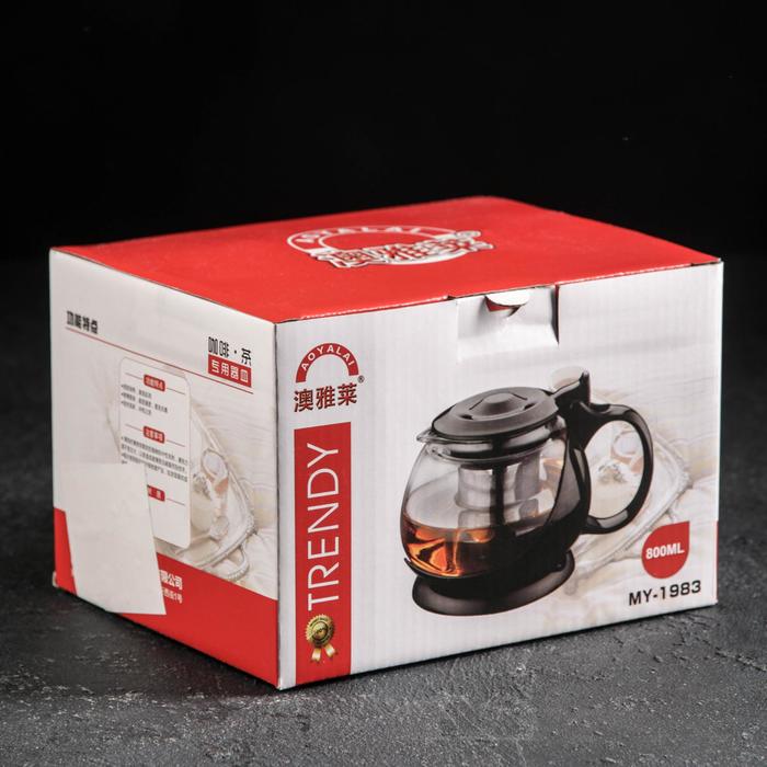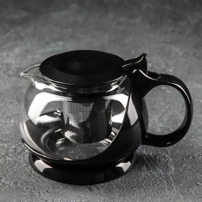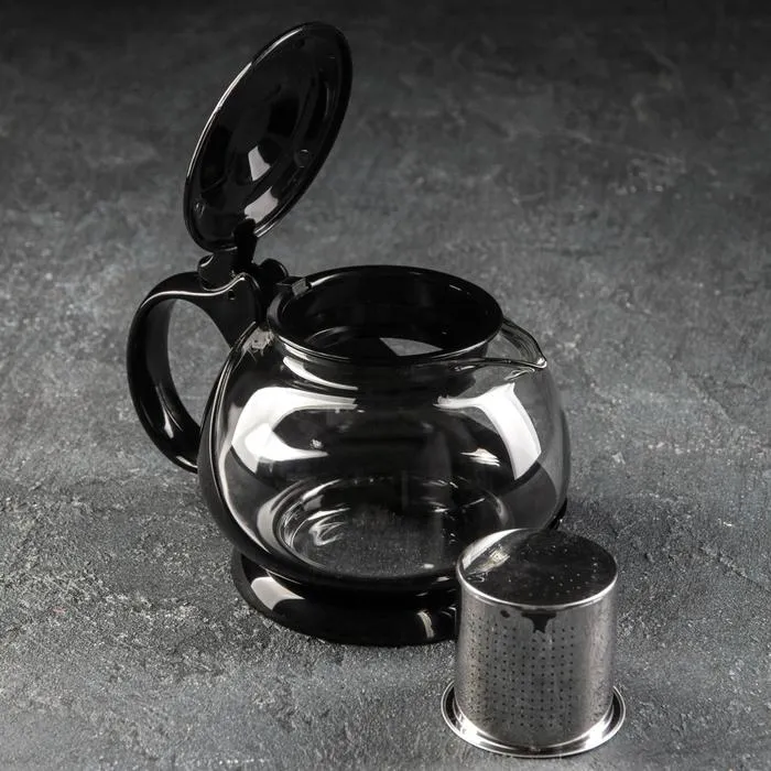 Чайник стеклянный заварочный «Бетти», 800 мл, с металлическим ситом, цвет чёрный — Характеристики