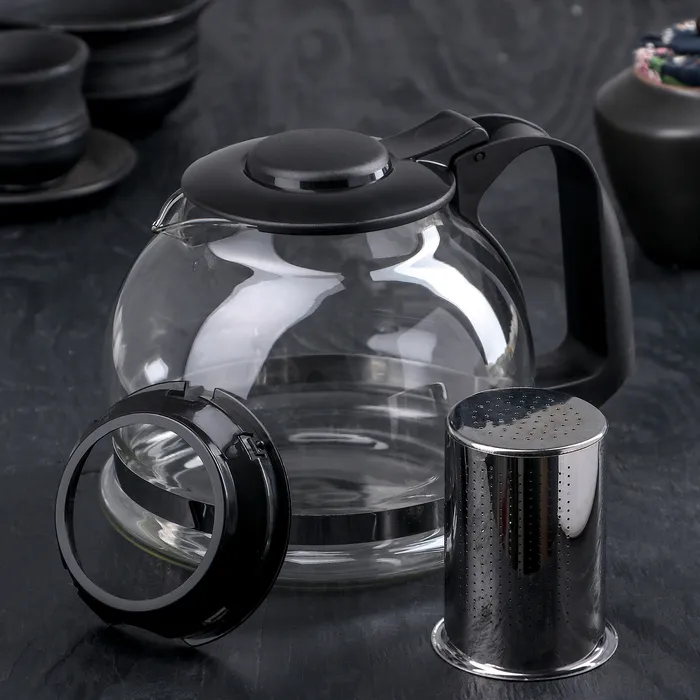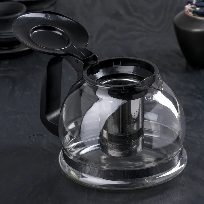 Чайник стеклянный заварочный «Иллюзия», 1,6 л, с металлическим ситом, цвет чёрный — Характеристики