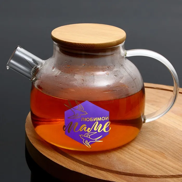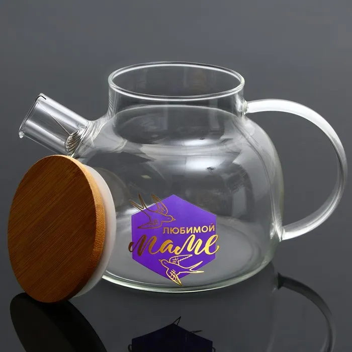 Чайник стеклянный заварочный с бамбуковой крышкой «Маме», 1000 мл — Характеристики