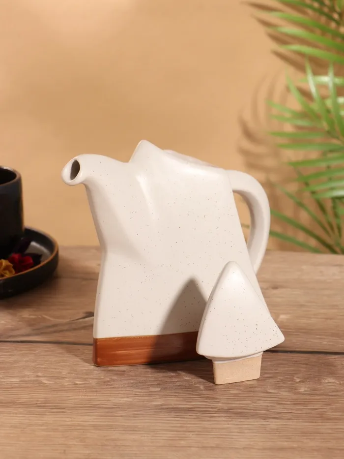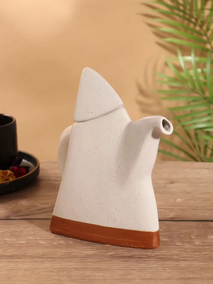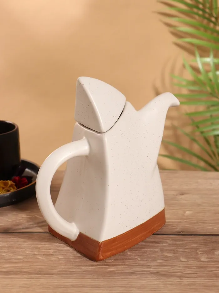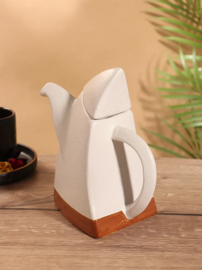 Восточный керамический чайник с изысканным орнаментом превратит чаепитие в особый ритуал. Классический белый цвет и матовая поверхность создают ощущение умиротворения, а фигурная форма напоминает о традициях восточных чайных церемоний.