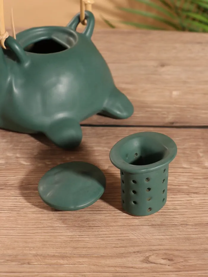 Чайные традиции в природном стиле! Керамический заварочный чайник в форме черепахи — создан для ценителей уютных чаепитий. Матовая поверхность глубокого зеленого цвета напоминает о теплых летних днях, а обтекаемая форма удобно ложится в руку.