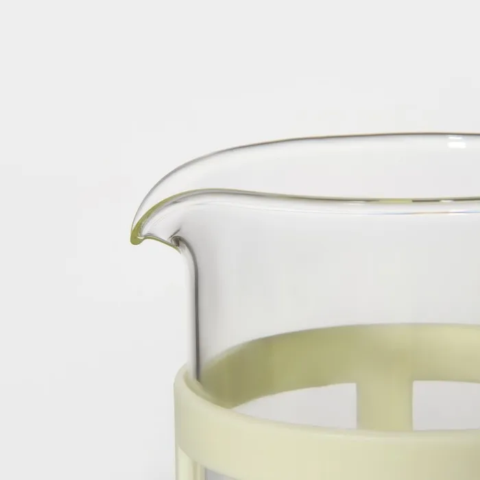 Стеклянный френч-пресс хорошо держит тепло, раскрывает вкус любимых напитков. Стальной поршень не вступает в реакцию с жидкостью, не наделяет ее металлическим привкусом.Принцип работы френч-пресса прост: