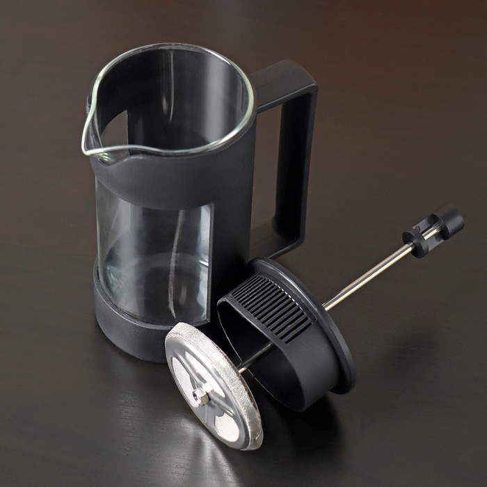 Стеклянный френч-пресс хорошо держит тепло, раскрывает вкус любимых напитков. Стальной поршень не вступает в реакцию с жидкостью, не наделяет ее металлическим привкусом.Принцип работы френч-пресса прост: