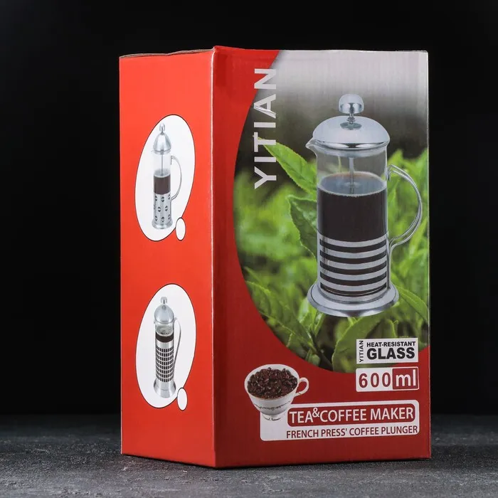 Чайник заварочный френч - пресс «Лофт», 600 мл, стекло, цвет чёрный — Характеристики