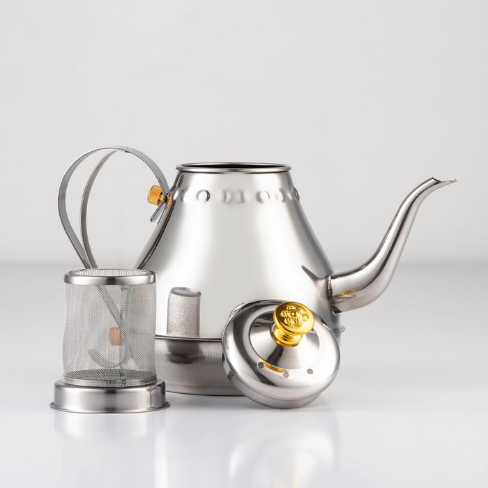 Чайник заварочный из нержавеющей стали «Леранс», 1,1 л, металлическое сито, цвет хромированный — Характеристики