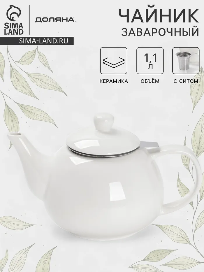 Чайник заварочный «Лепестки», металлическое сито, 600 мл, керамика, белый — Характеристики