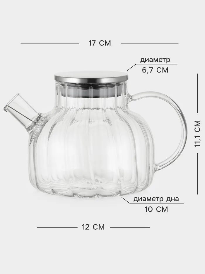 Чайник заварочный Magistro, «Свик», 600 мл 20×11 см, с металлическим фильтром, стекло, прозрачный — Характеристики