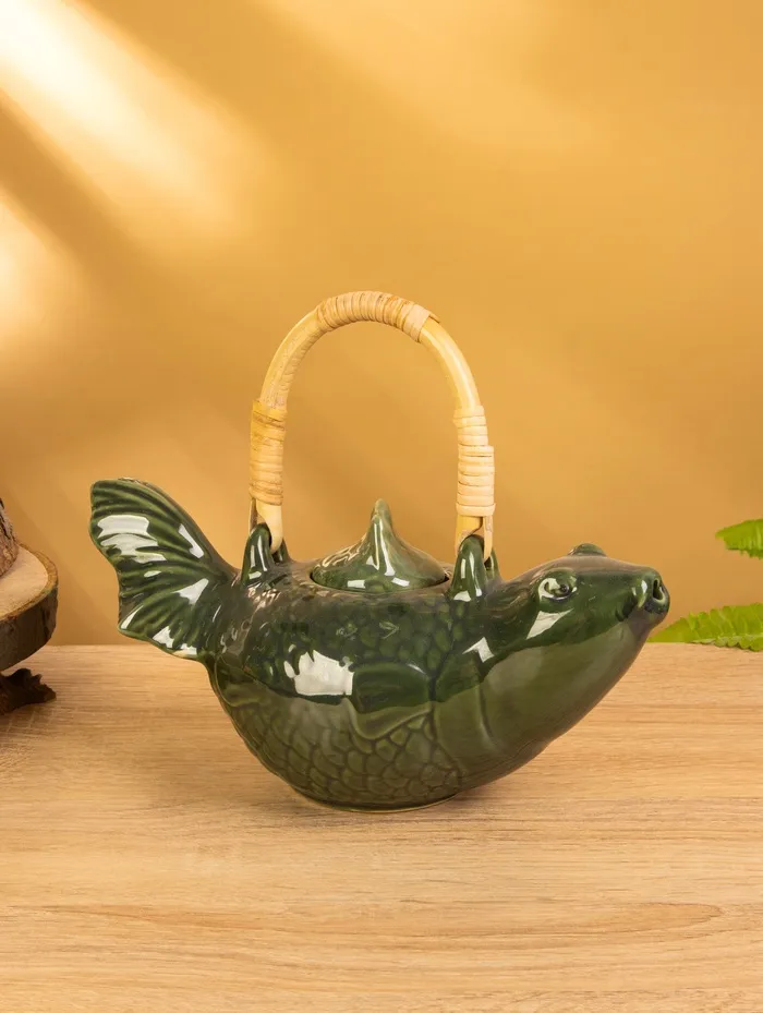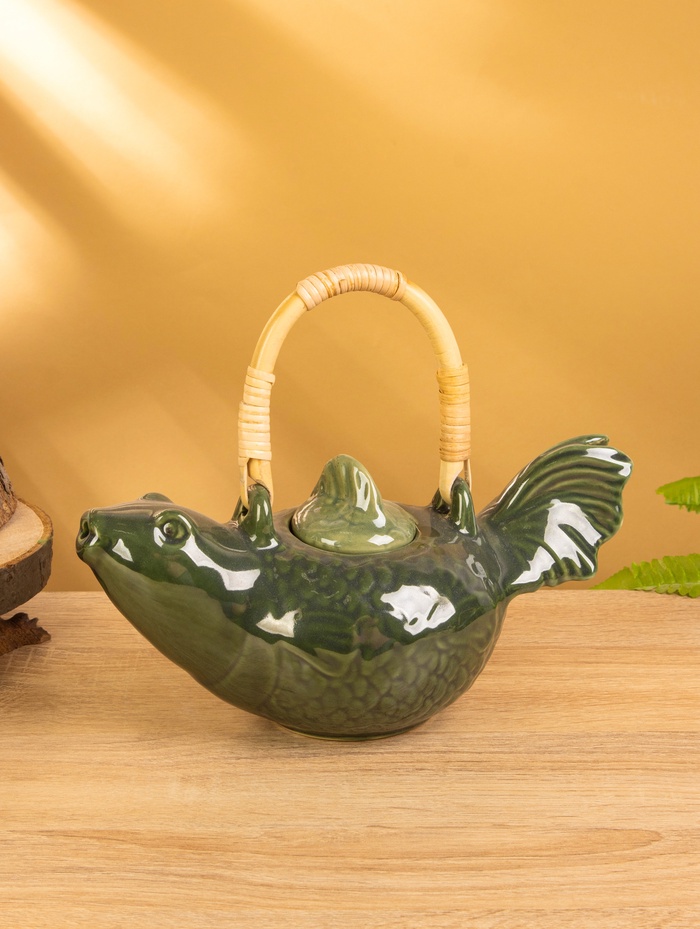 Чайник заварочный «Рыбина», 24×12×20 см, керамика, зелёный — Характеристики