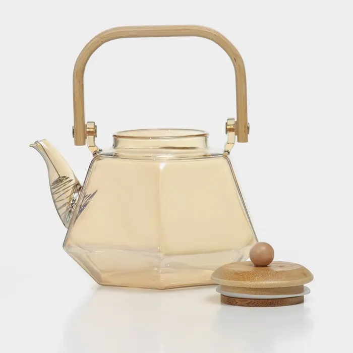 Чайник заварочный «Октогон» изготовлен из термостойкого стекла и имеет необычный дизайн. В нём можно заваривать фруктовый чай, листовой и травы. Сито защищает напиток от попадания чаинок в чашку. Она изготовлена из особого металла, который не дает никаких реакций при длительном контакте с водой. Это сделает Ваше чаепитие не только приятным, но и абсолютно безопасным.