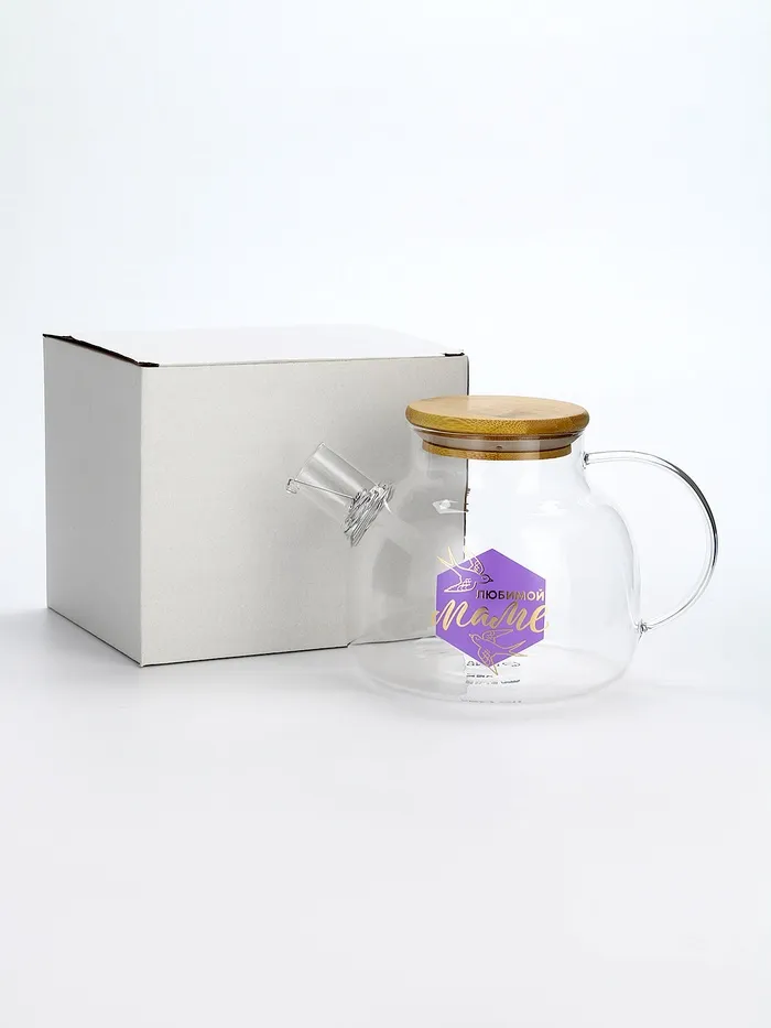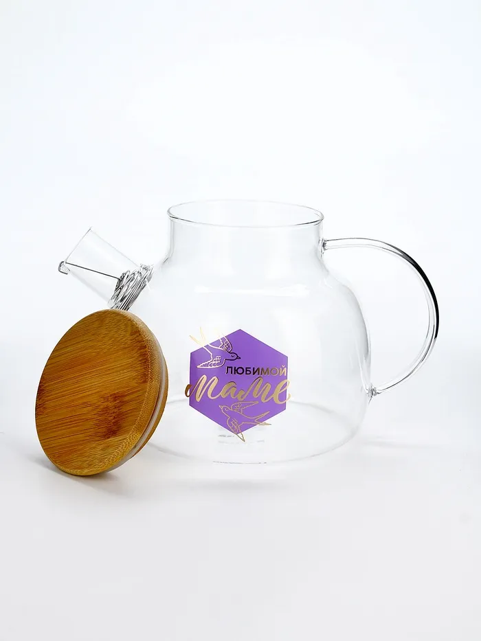 Чайник заварочный стеклянный с бамбуковой крышкой «Любимой маме», 1000 мл — Характеристики
