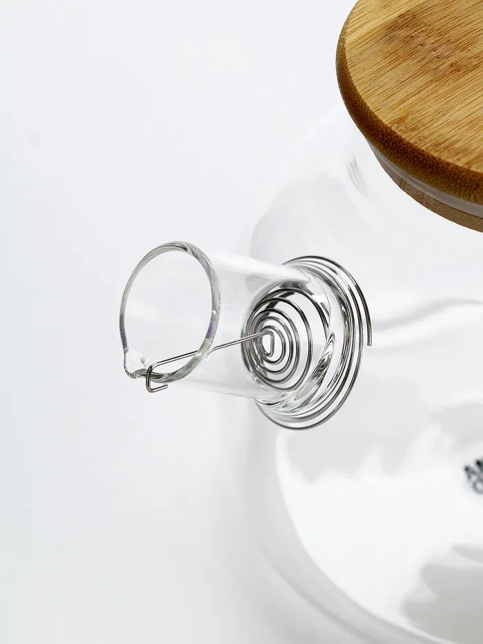 - Стильный дизайн: прозрачный стеклянный корпус и бамбуковая крышка придают чайнику элегантный и современный вид, который будет отлично смотреться на любой кухне.