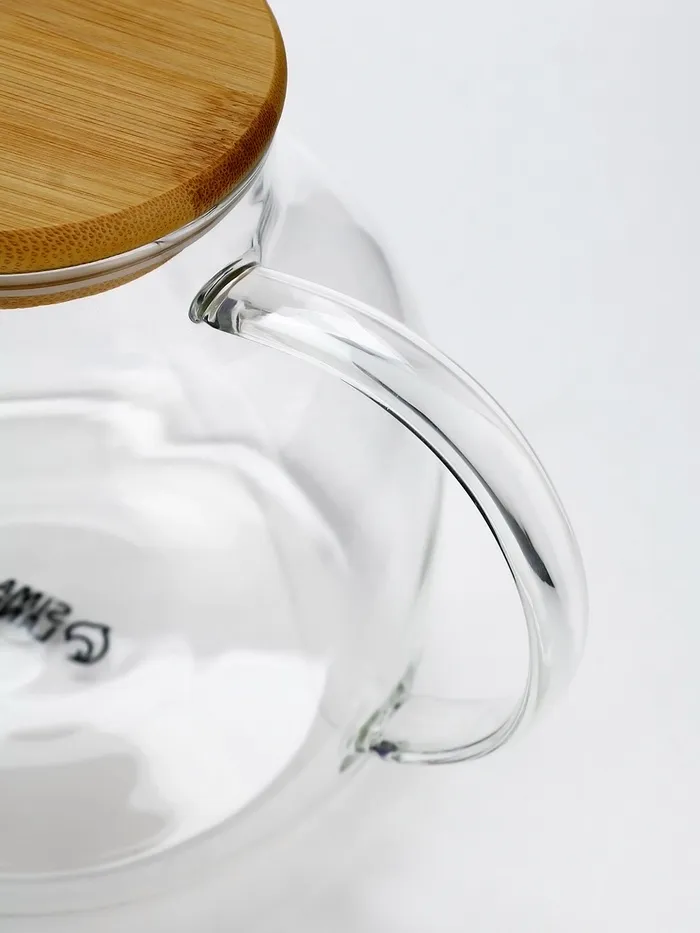 Стеклянный заварочный чайник с бамбуковой крышкой и объёмом 1000 мл — это стильный и функциональный аксессуар для вашей кухни.