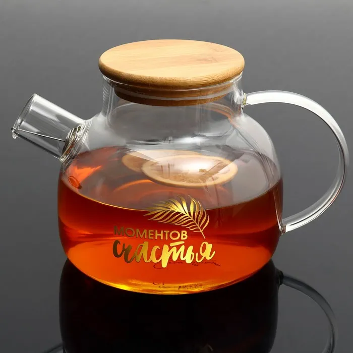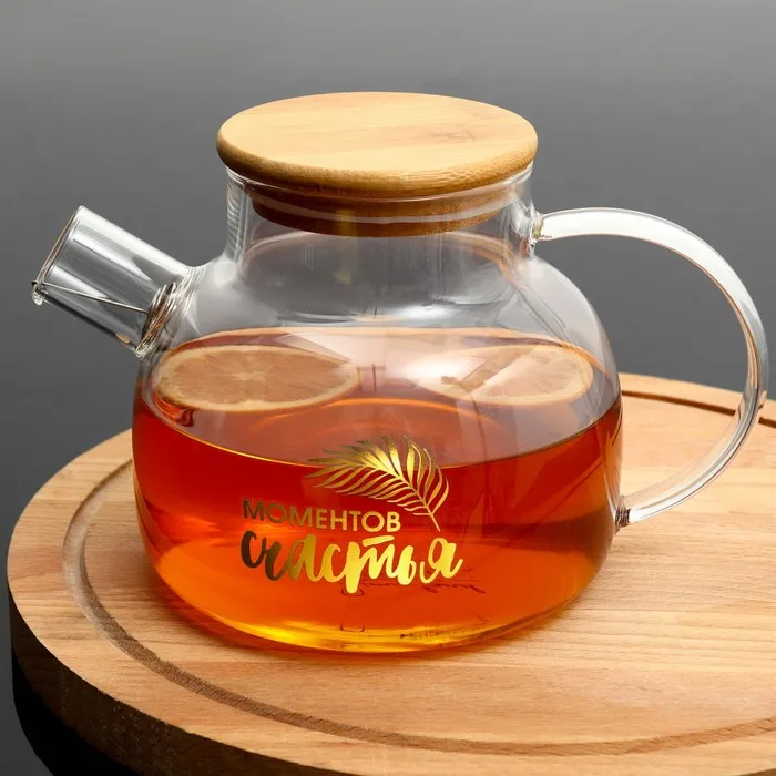 Чайник заварочный стеклянный с бамбуковой крышкой «Моментов счастья», 1000 мл — Характеристики
