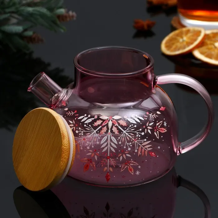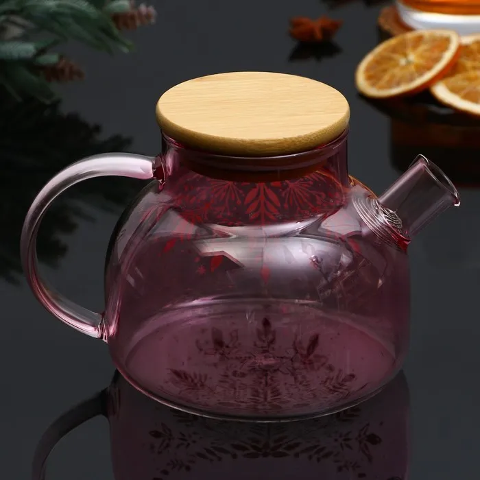 Чайник заварочный стеклянный с бамбуковой крышкой «Розовая сказка», 600 мл — Характеристики