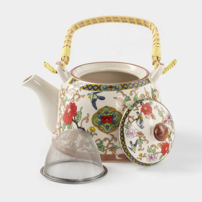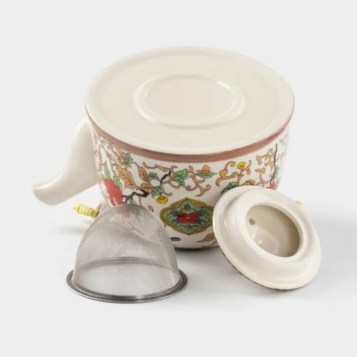 Предлагаемый чайник заварочный «Цветы», 900 мл, с металлическим ситом, керамика выполнен из керамики высокого качества. Деколь с нежными природными мотивами будет радовать всех участников чаепития. Хрупкая на вид модель обладает высокой износостойкостью и при должном уходе прослужит своему владельцу в течение долгого времени.