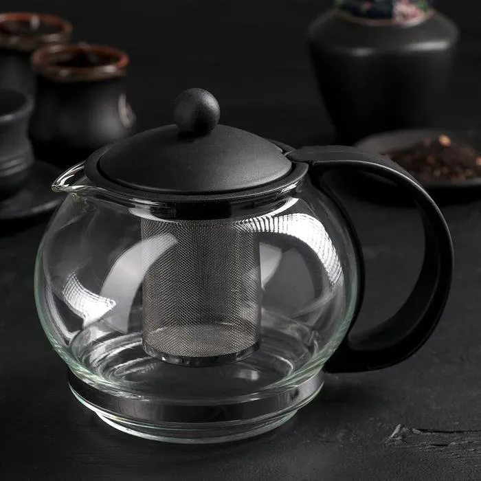 Чайник заварочный «Вдохновение», 1.25 л, с металлическим ситом, стекло, чёрный — Характеристики
