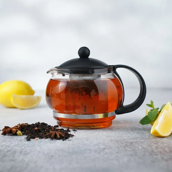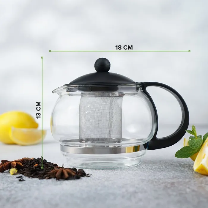 Чайник заварочный «Вдохновение», 850 мл, с металлическим ситом, стекло, чёрный — Характеристики