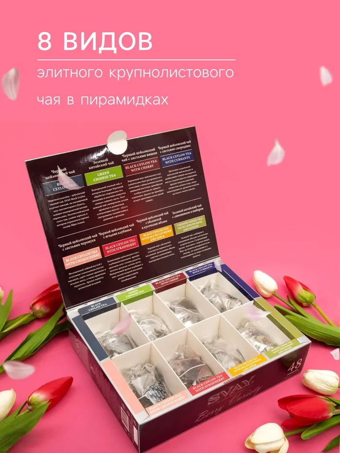 Коллекция Svay Berry Variety - уникальное собрание высококачественных сортов цейлонских и китайских чаев с натуральными травами и ягодами. Грамотное сочетание терпких чайных ноток с кислинкой и сладостью ягод идеально дополняет любое событие, делая его незабываемым.