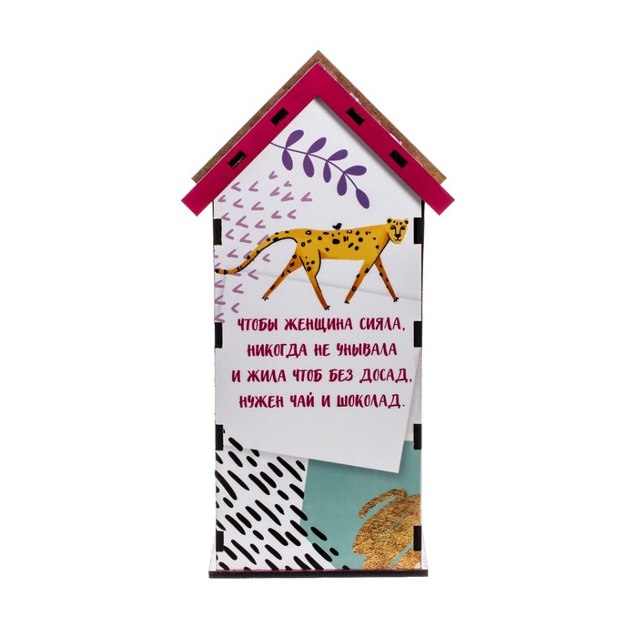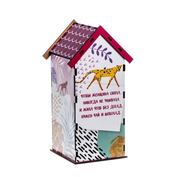 Чайный домик – это необычная упаковка для хранения чая. Он поможет навести порядок на обеденном столе, а также станет его яркой деталью. Чайные пакетики закладываются сверху внутрь домика и вынимаются снизу.