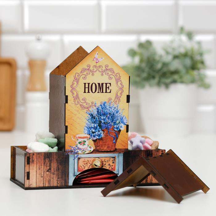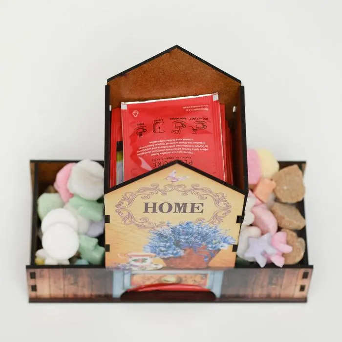 Чайный домик – это необычная упаковка для хранения чая. Он поможет навести порядок на обеденном столе, а также станет его яркой деталью. Чайные пакетики закладываются сверху внутрь домика и вынимаются снизу.