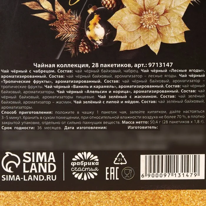 Состав: чай чёрный байховый, ароматизаторы пищевые.