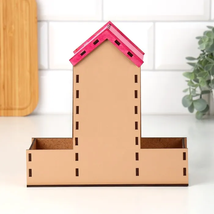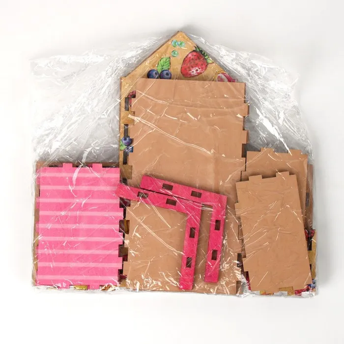 Домик выполнен из материала ХДФ, а красочность рисунка задаётся благодаря оклейке полиграфией.