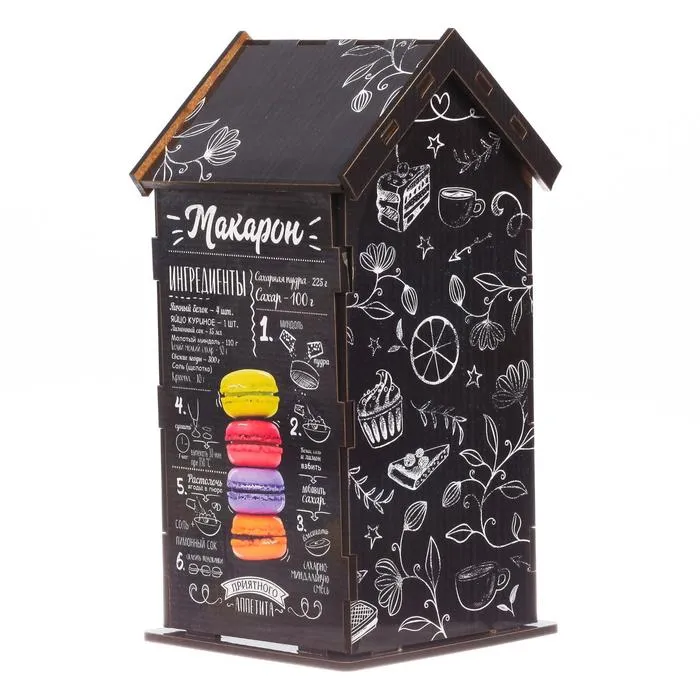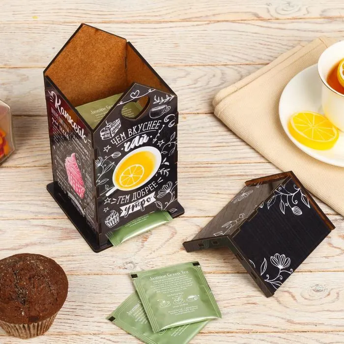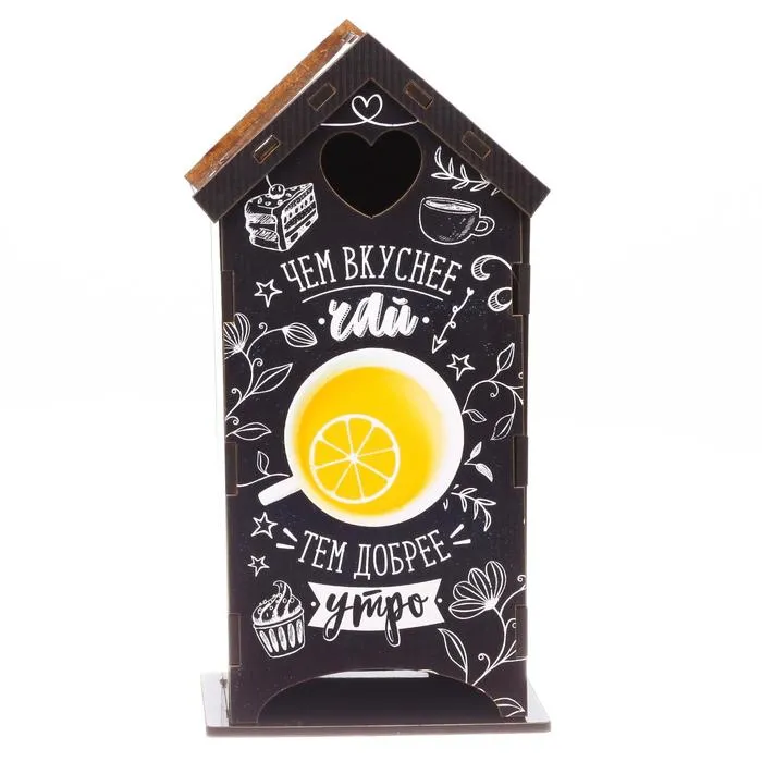 Чайный домик – это необычная упаковка для хранения чая. Он поможет навести порядок на обеденном столе, а также станет его яркой деталью. Чайные пакетики закладываются сверху внутрь домика и вынимаются снизу.