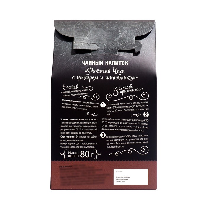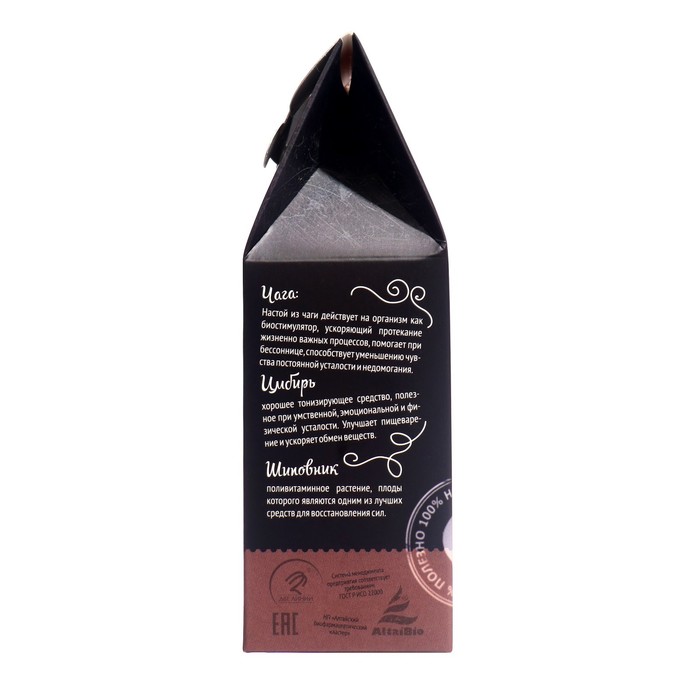 Состав: чага (берёзовый гриб), корень имбиря, плоды шиповника.