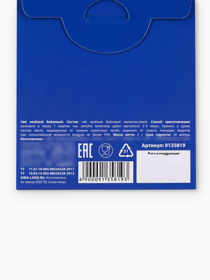 Способ приготовления: положите в чашку 1 пакетик чая, залейте кипятком, дайте настояться 3–5 минут.