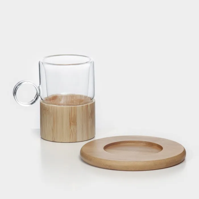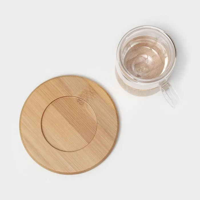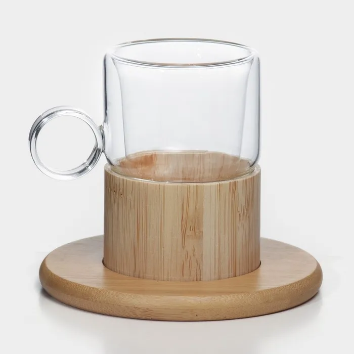 Чайный сервиз «Мадера», 12 предметов: 6 кружек 100 мл, 6 бамбуковых подставок d=11 см, стекло — Характеристики