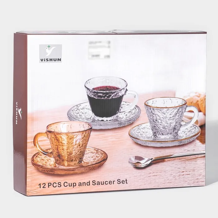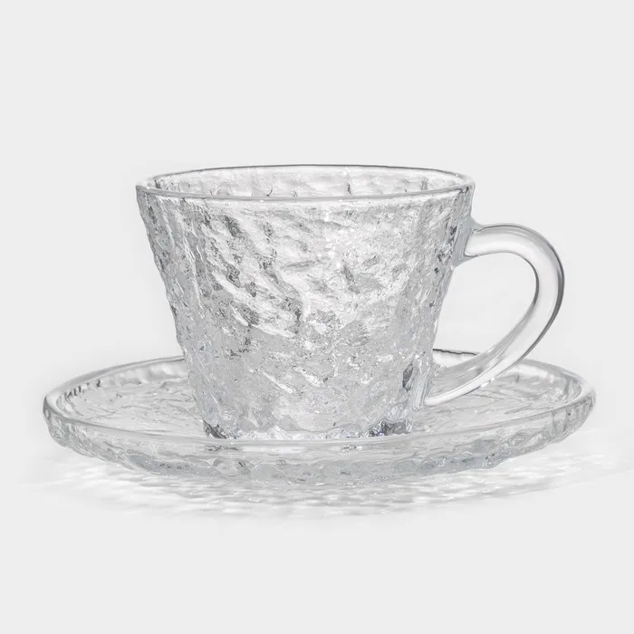 Чайный сервиз «Вулкан», 12 предметов: 6 чашек 180 мл, 6 блюдец d=14 см, стекло, прозрачный — Характеристики