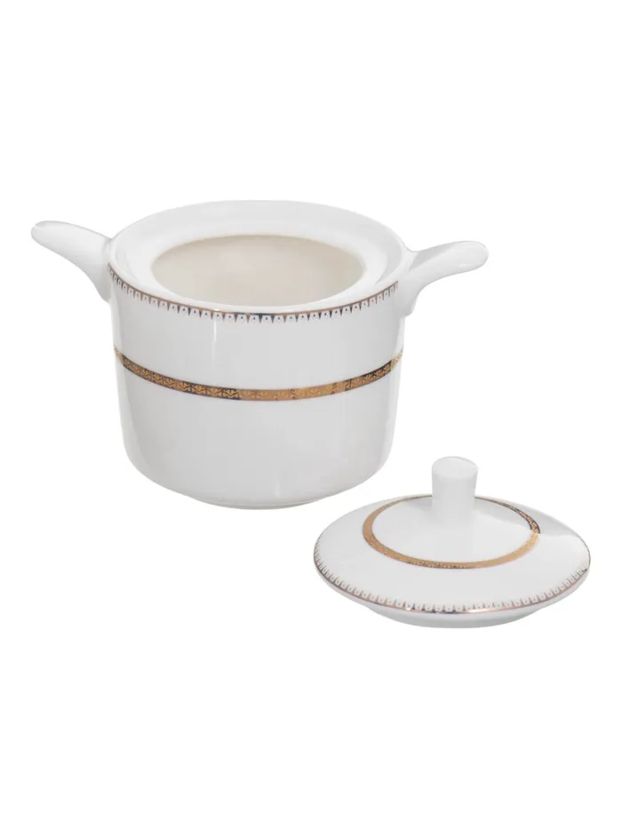 Создайте атмосферу изысканности и тепла за своим столом с помощью чайного сервиза WY "Grace"! Этот полноценный набор, включающий 20 предметов, идеален для уютных чаепитий в небольшой компании. Сервиз выполнен из высококачественного фарфора белого цвета с нежным рисунком и элегантной золотой отделкой, что придает ему особый шик и роскошь.