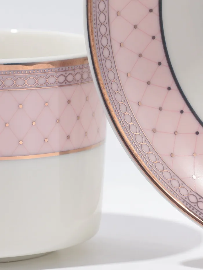 Каждый элемент сервиза выполнен из высококачественного фарфора и украшен изящной золотой отводкой, что придаёт ему особый шарм и элегантность. Гладкая текстура и чистый белый цвет делают комплект универсальным для любого стиля празднования — от душевной встречи с друзьями до торжественного десерта.