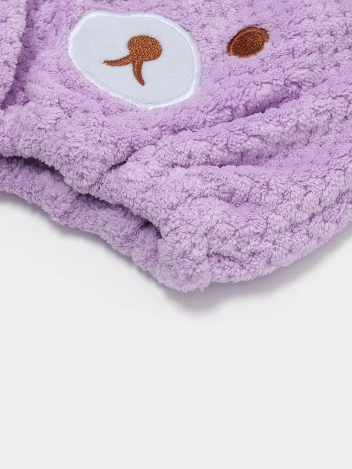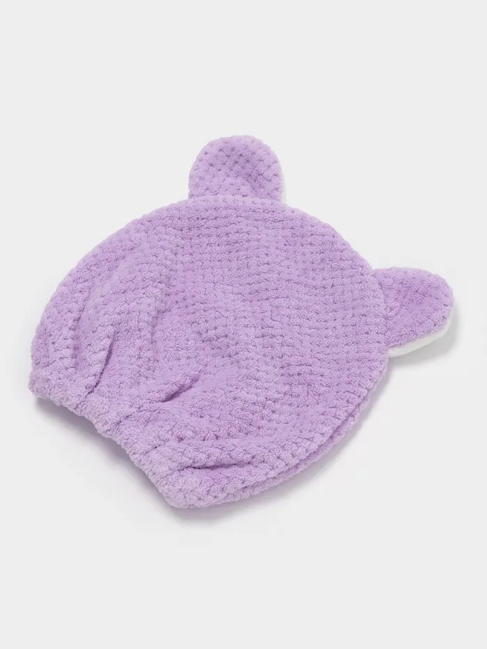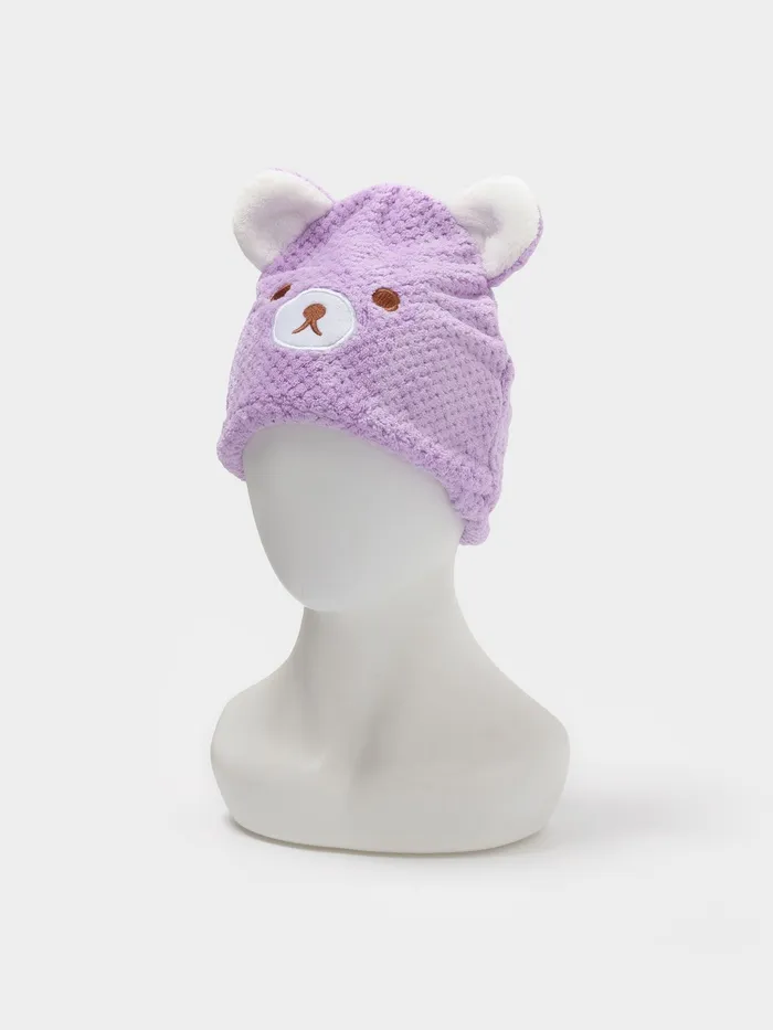 Чалма для сушки волос Доляна «Медвежонок», микрофибра, фиолетовая — Характеристики