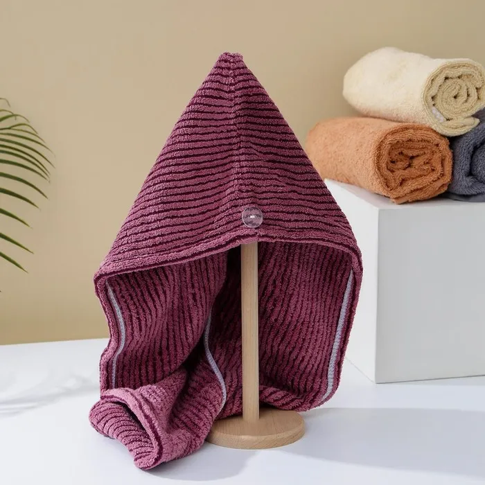 Чалма для сушки волос Доляна, микрофибра, с пуговкой, бордовая — Характеристики