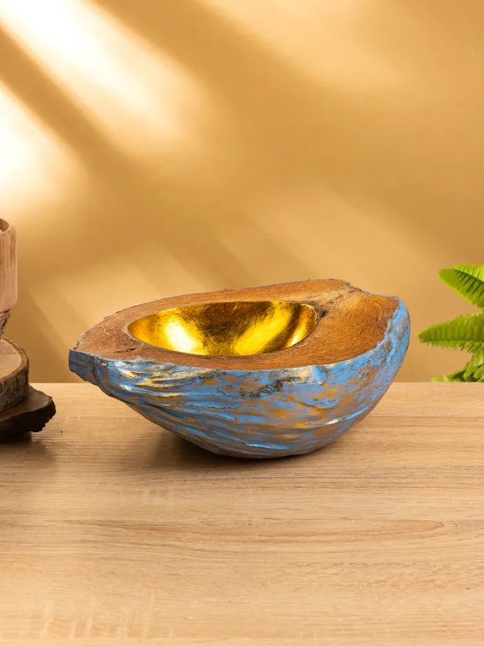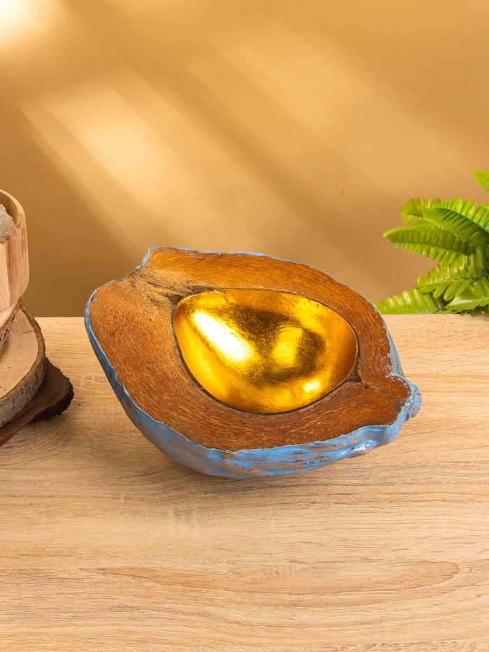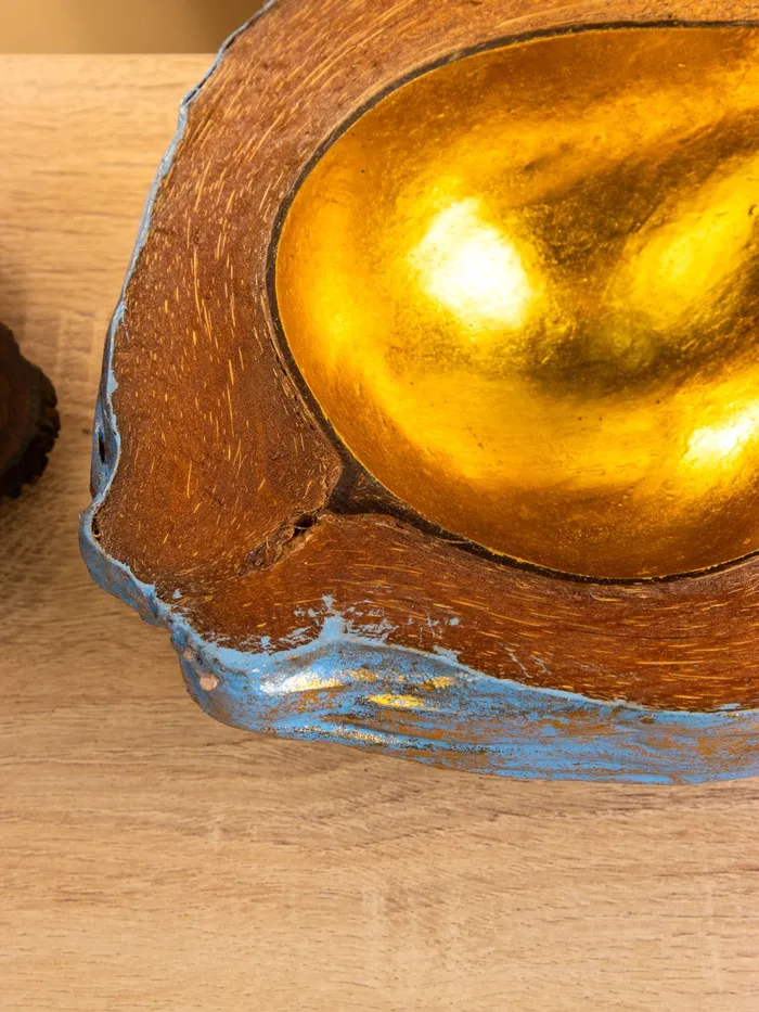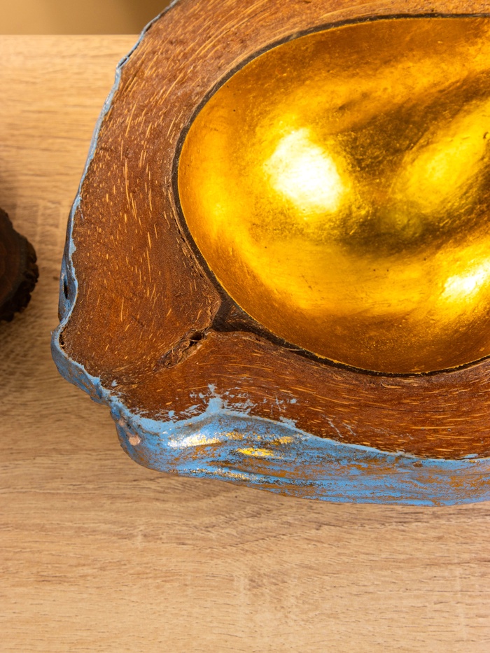 Чаша из кокоса, 22.5×25×10 см, сине-золотая — Характеристики