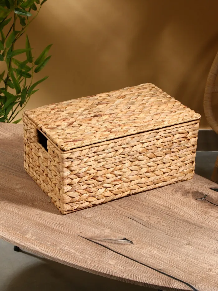 Корзинка прямоугольная с крышкой, 40×25×18 см, водный гиацинт