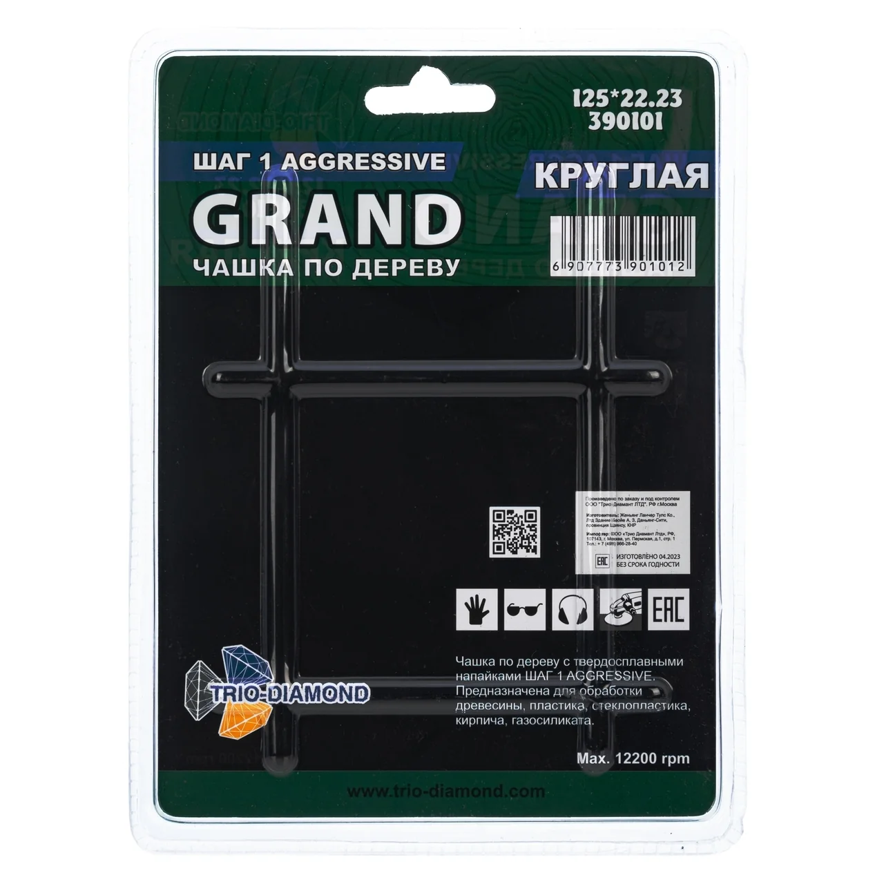 Чашка 125 мм Grand с шагом 1 Aggressive для шлифовки древесины и газобетона